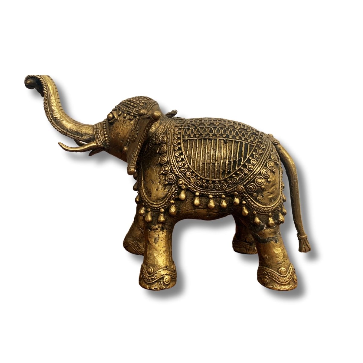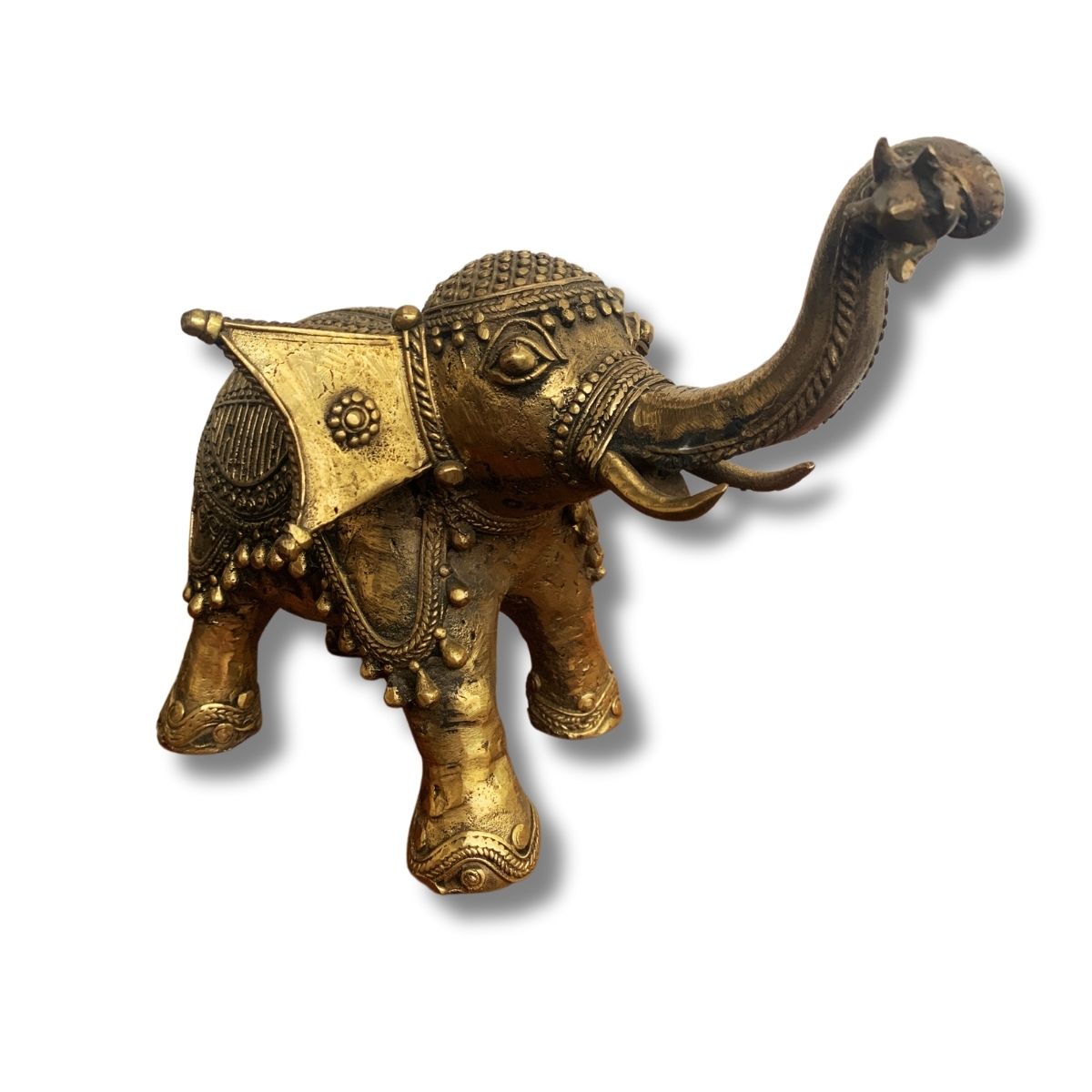 Dieser kunstvoll gearbeitete Elefant aus Messing ist ein handgefertigtes Einzelstück aus Indien.
