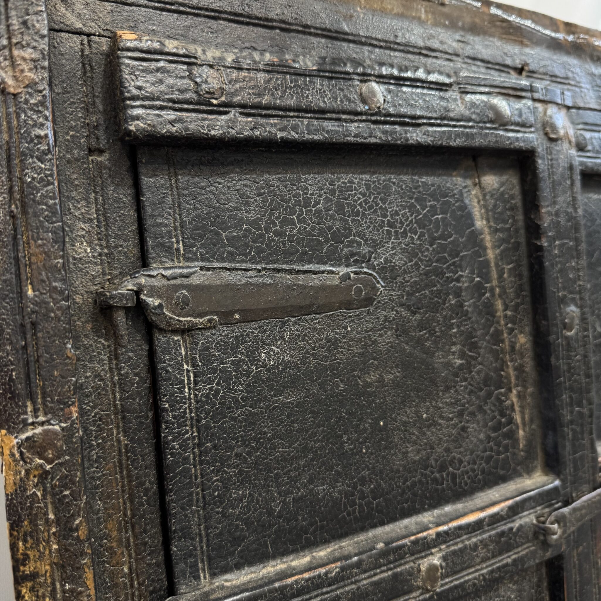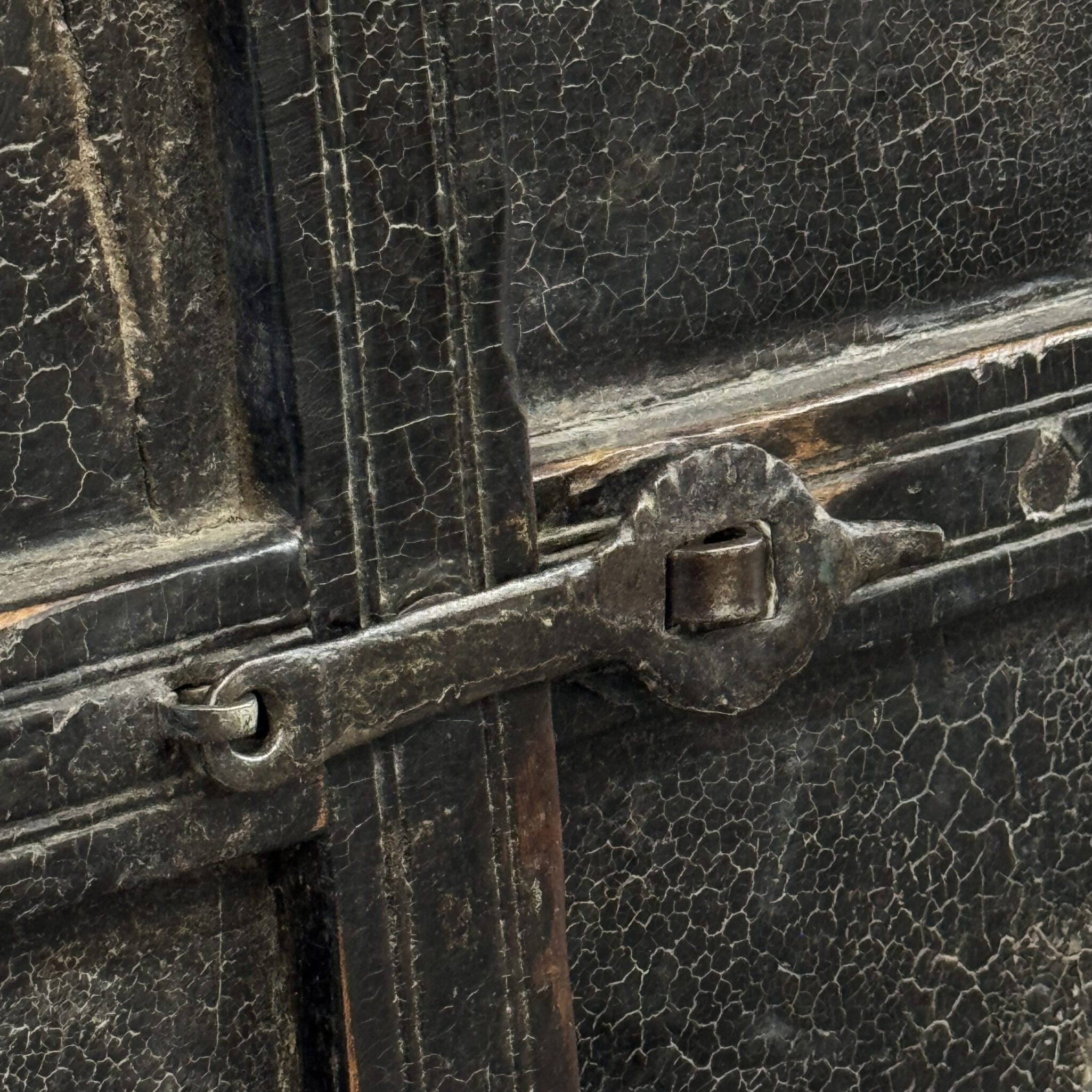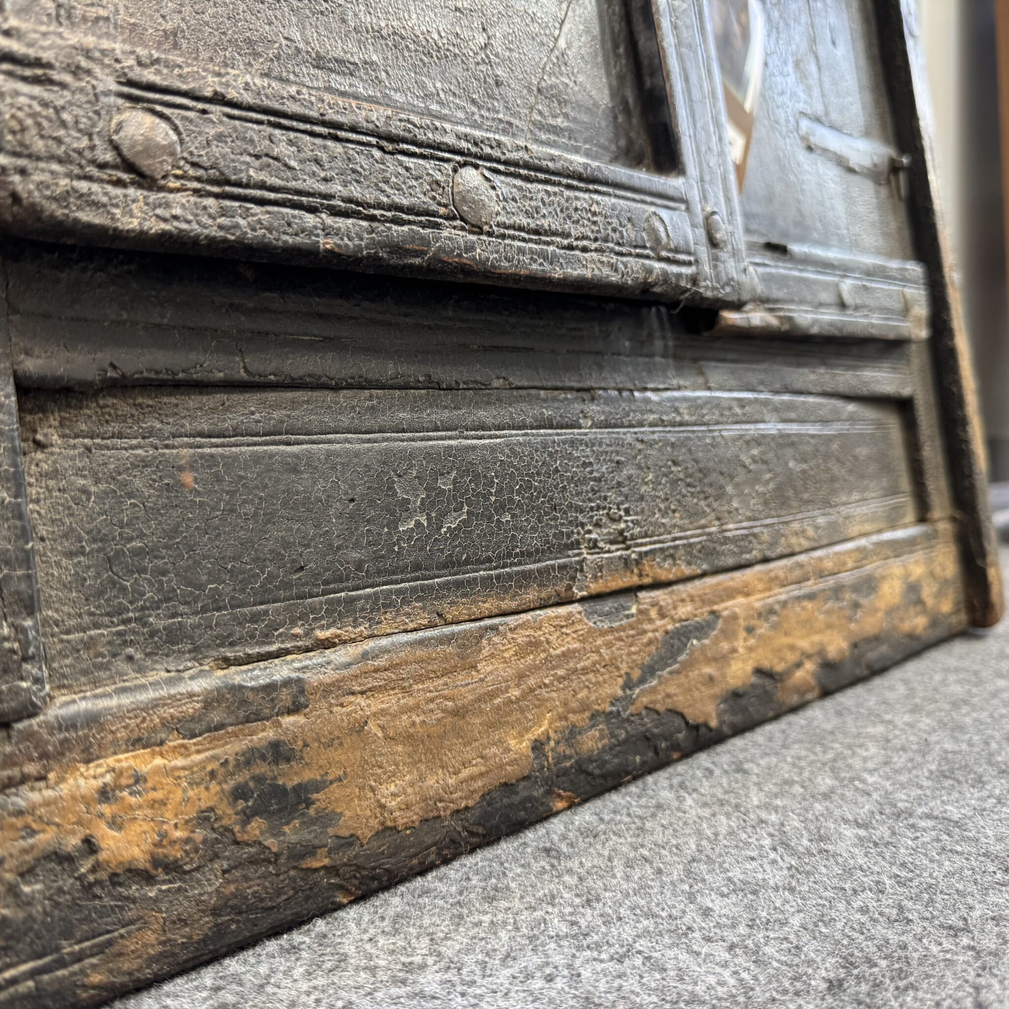 Dieser markante Fensterspiegel besticht durch seine Fertigung aus echtem, historischem Altholz. Das Möbelstück zeigt zudem eine wunderschöne schwarze Farbgebung im Shabby Chic Stil. Deshalb eignet sich dieses Objekt hervorragend als Akzent in Ihrem Badezimmer oder Flur. Das verarbeitete Echtholz garantiert überdies eine hohe langlebige Qualität. Somit investieren Sie in ein nachhaltiges Produkt mit viel historischem Charme. Ein solches Unikat lässt sich zudem wunderbar mit weiteren Vintage-Möbeln aus unserem Sortiment kombinieren. Folglich wertet das Stück jede Wand sofort optisch auf und schafft eine behagliche Wohnatmosphäre in Ihrem Zuhause.