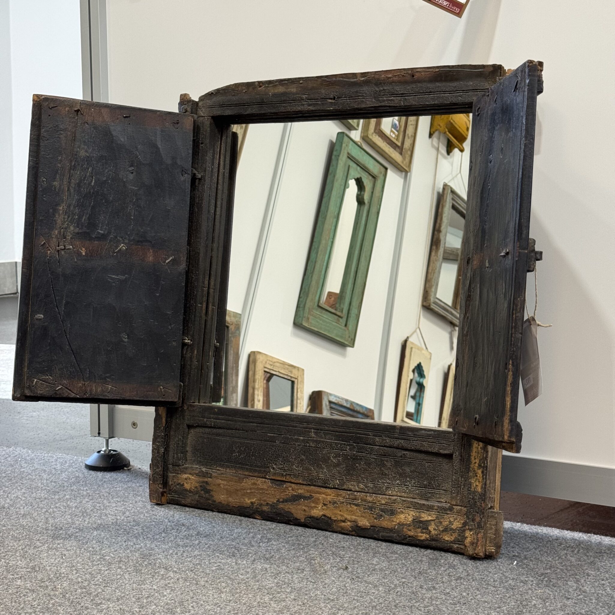 Bei der Herstellung dieser Spiegel steht die traditionelle Handwerkskunst im Vordergrund. Ein hochwertiger Fensterspiegel überzeugt durch seinen Rahmen mit authentischer, gewachsener Patina. Die dunklen Farbschichten verleihen jedem Stück eine besondere Tiefe. Jeder Spiegel ist ein handgefertigtes Einzelstück und bringt eine individuelle Ausstrahlung in Ihren Wohnbereich. Zudem schmücken antike Metallbeschläge und Riegel die Konstruktion. Deshalb ist dieses Modell ein wahres Unikat für Kenner von Ethno-Dekor. Durch die richtige Pflege bleibt die natürliche Schönheit über viele Jahre hinweg perfekt erhalten. Somit sichern Sie sich ein langlebiges Kunstwerk für Ihre vier Wände.