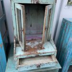 Ein liebevoll gefertigter Hausaltar aus massivem Holz mit einer zart türkisfarbenen Patina, die im Laufe der Zeit ihren authentischen Charakter entfaltet hat.