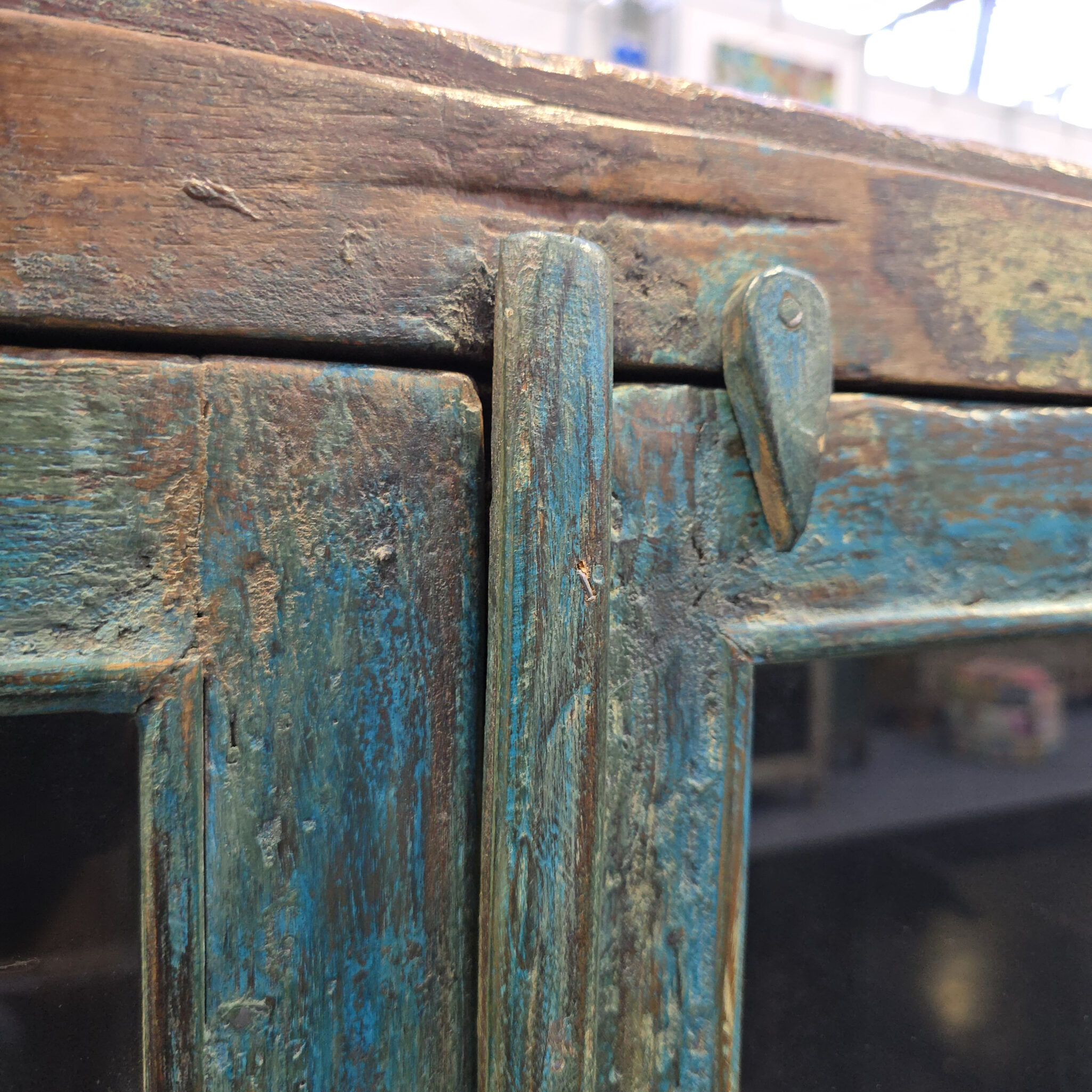Dieses exklusive Kabinett Holz besticht durch seine natürliche Ausstrahlung und bringt eine warme, behagliche Atmosphäre in Ihre Räume. Die naturbelassene Maserung des Holzes ist kunstvoll hervorgehoben. Zudem verleihen die authentischen Gebrauchsspuren dem Möbelstück einen unverwechselbaren Vintage-Charakter. Deshalb eignet sich dieses Kabinett Holz hervorragend als Blickfang in einem individuell gestalteten Wohn- oder Esszimmer. Darüber hinaus harmoniert der warme Holzton wunderbar mit verschiedenen Farbkonzepten. Folglich schafft das Kabinett Holz eine einladende Umgebung in jedem Zuhause. Somit erwerben Sie nicht nur ein praktisches Möbelstück, sondern ein echtes Stück Naturgeschichte. Jedes Detail der Oberfläche erzählt zudem von traditioneller Handwerkskunst.