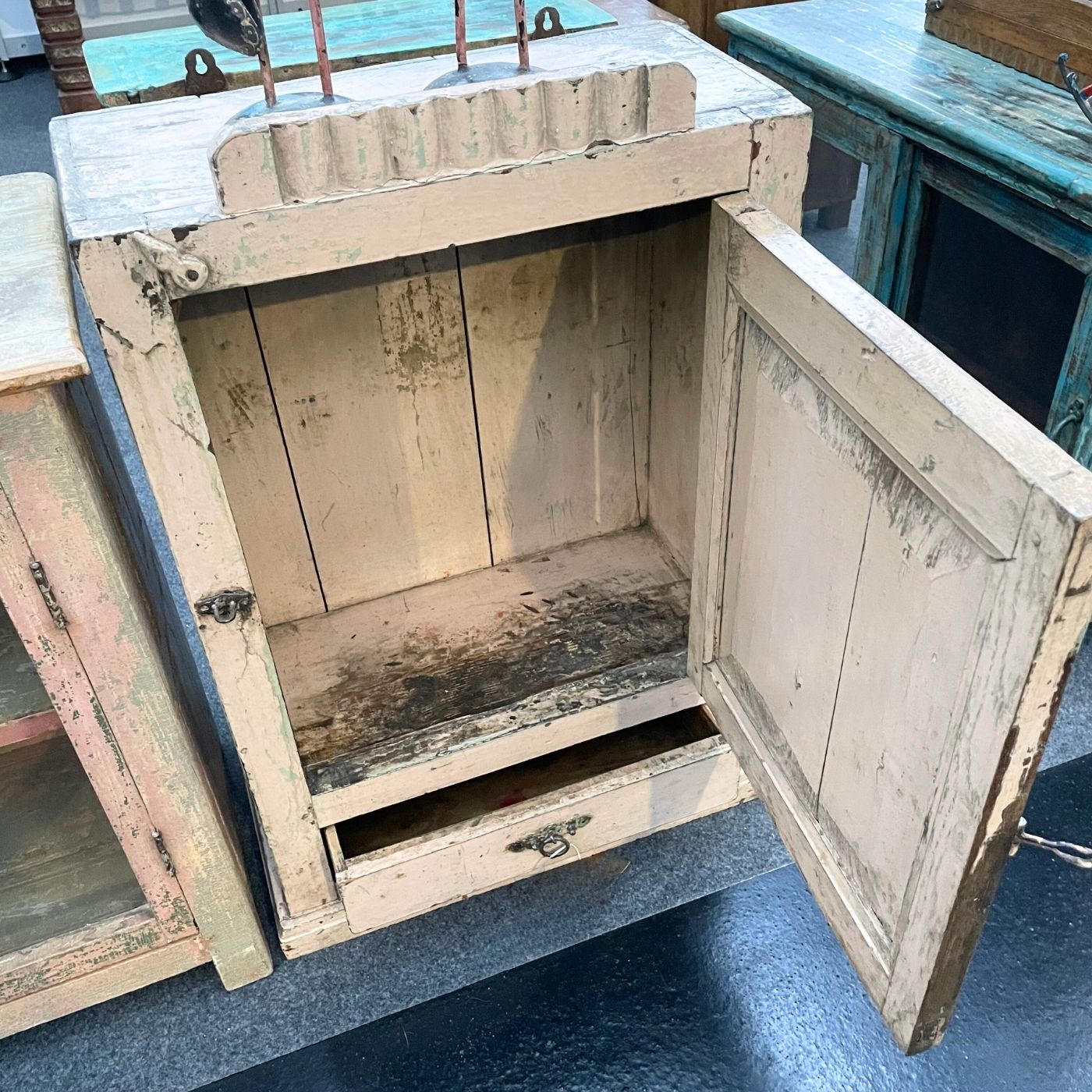 Die kleine Schublade mit Metallgriff und die klassische Tür verleihen dem Möbel eine ruhige, harmonische Ausstrahlung.