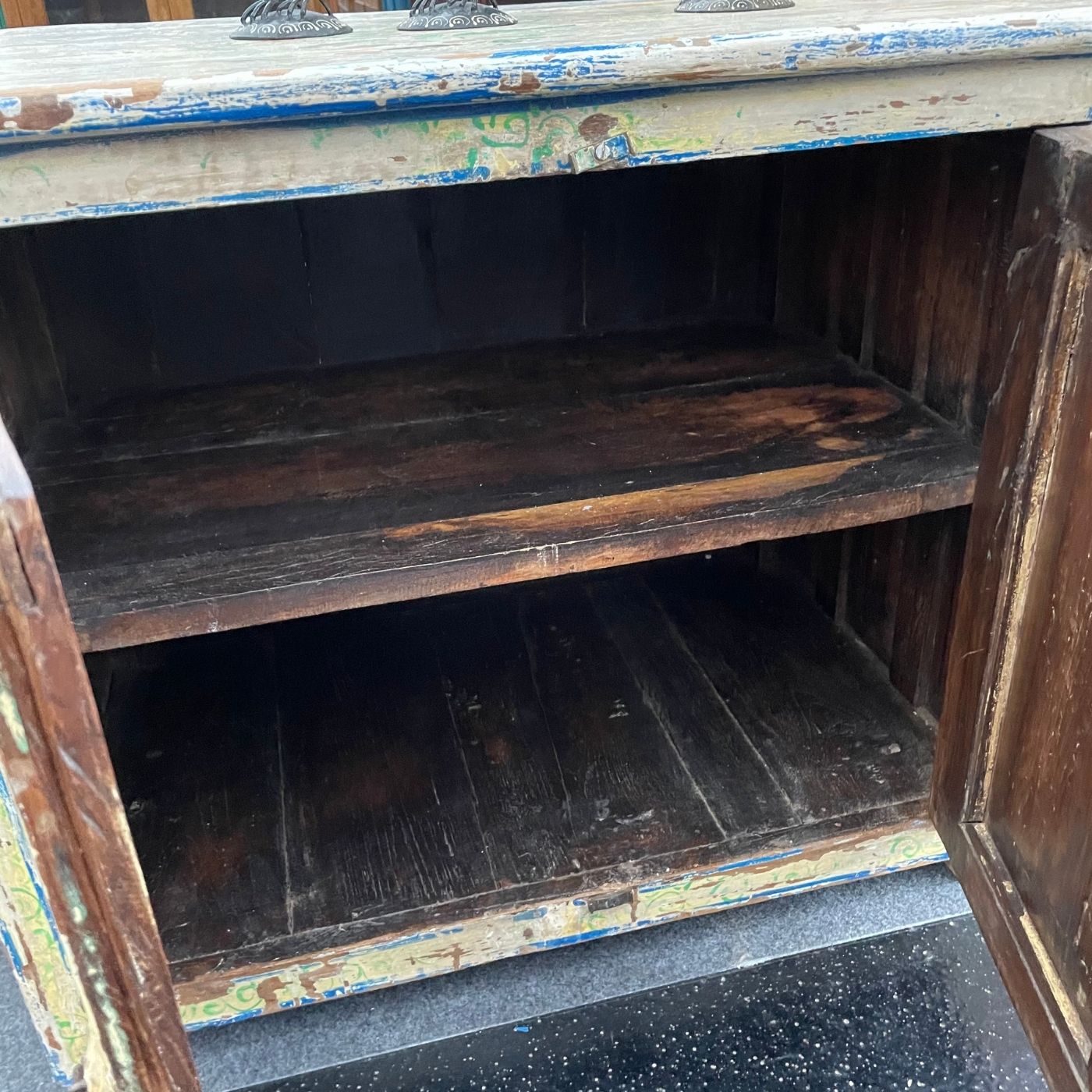 Gefertigt aus massivem Holz, bringt es einen Hauch indischer Lebensfreude in Ihr Zuhause – ob als kleiner Beistellschrank, farbenfrohes Akzentmöbel oder charmantes Einzelstück.