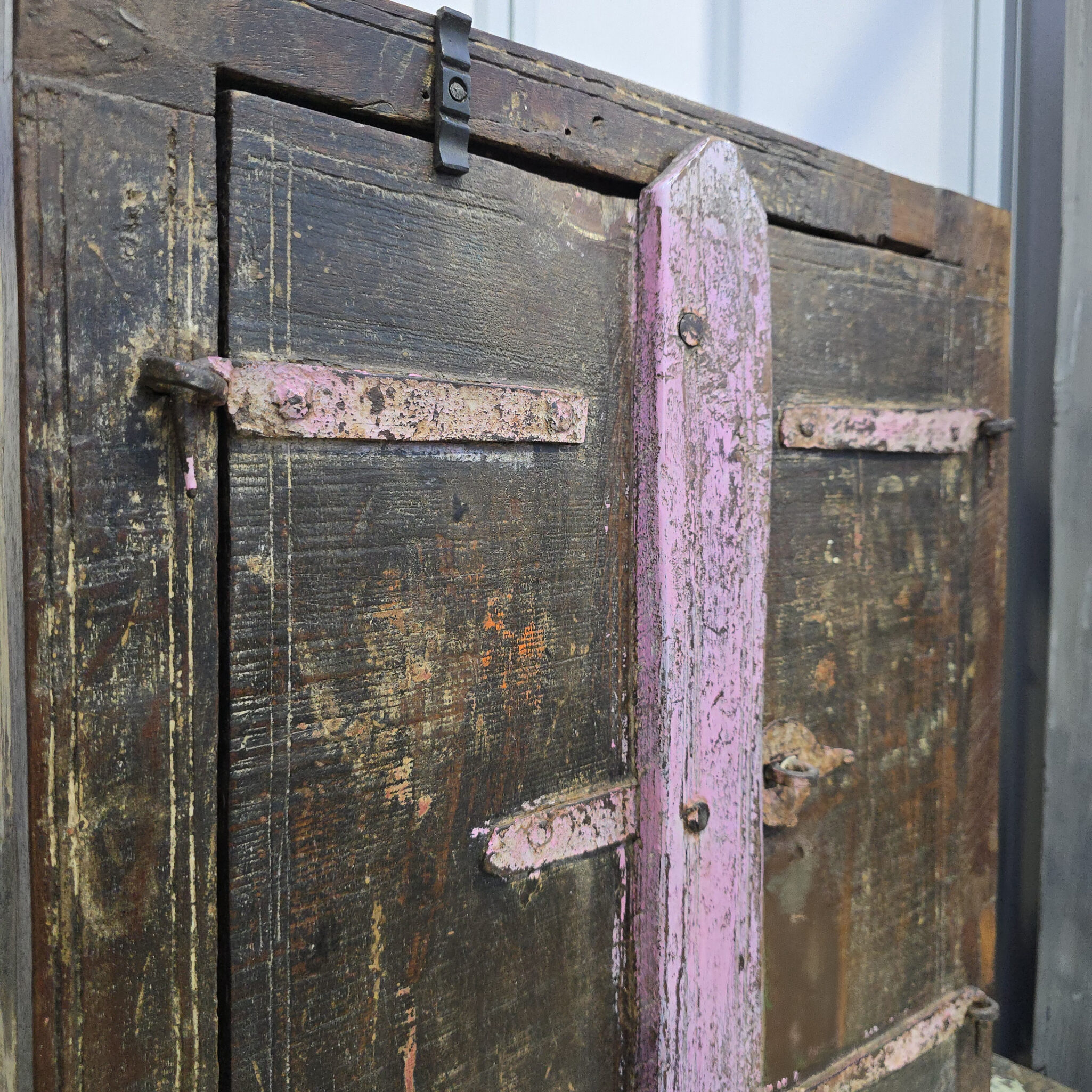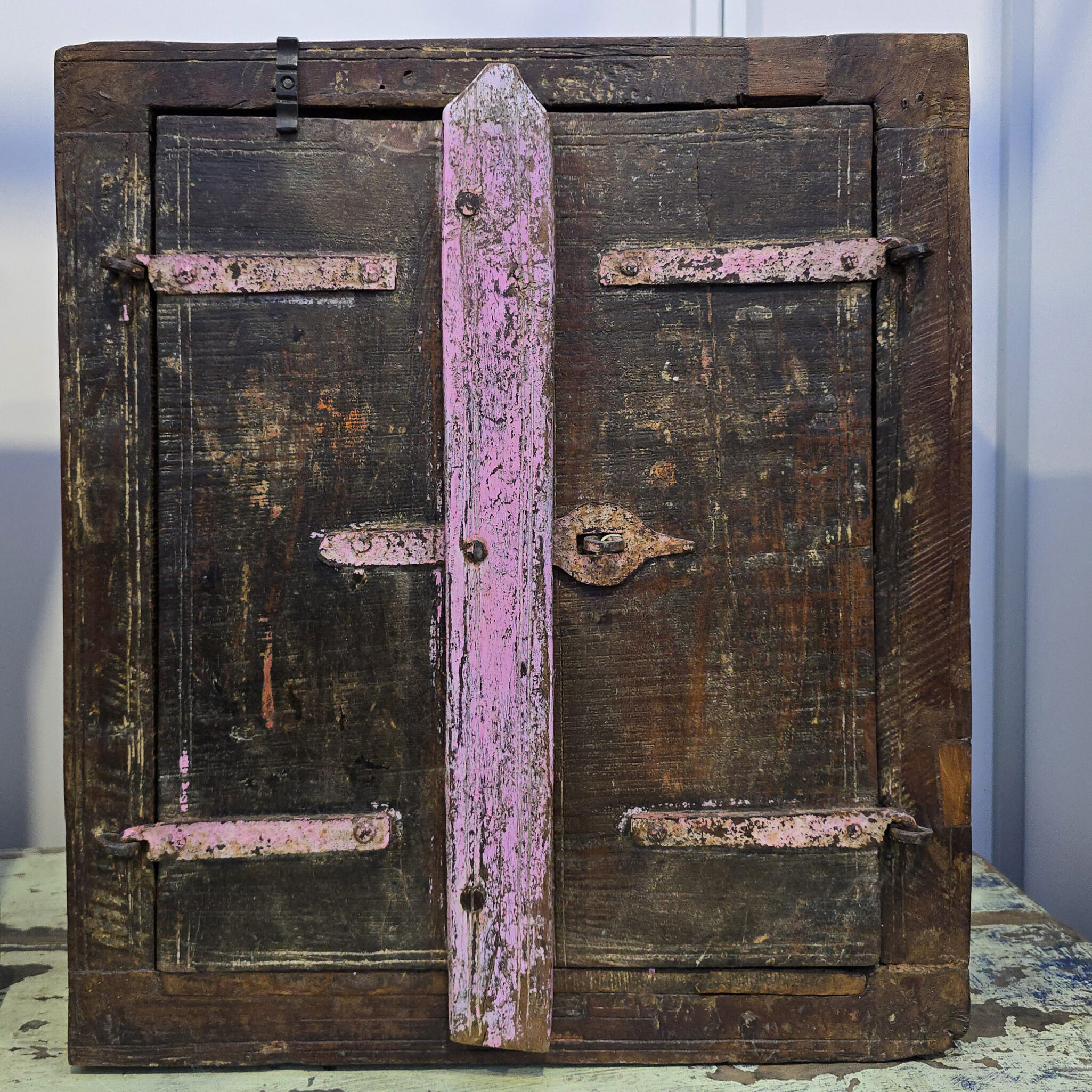 Dieses Rustikales Kästchen aus Massivholz besticht durch seinen unverwechselbaren Vintage-Charakter und seine historische Ausstrahlung. Die markante Holzstruktur erzählt von vergangenen Zeiten. Somit stellt dieses Möbelstück eine perfekte Ergänzung für Individualisten dar. Besonders auffällig sind die künstlerischen Farbakzente in zartem Rosa auf den massiven Beschlägen. Zudem verleiht die dunkle Patina des Holzes dem Raum eine tiefe, behagliche Atmosphäre. Dieses Rustikales Kästchen aus Massivholz wirkt deshalb wie ein wertvolles Erbstück aus einer anderen Welt. Folglich integriert es sich hervorragend in Wohnkonzepte, die auf Authentizität setzen.