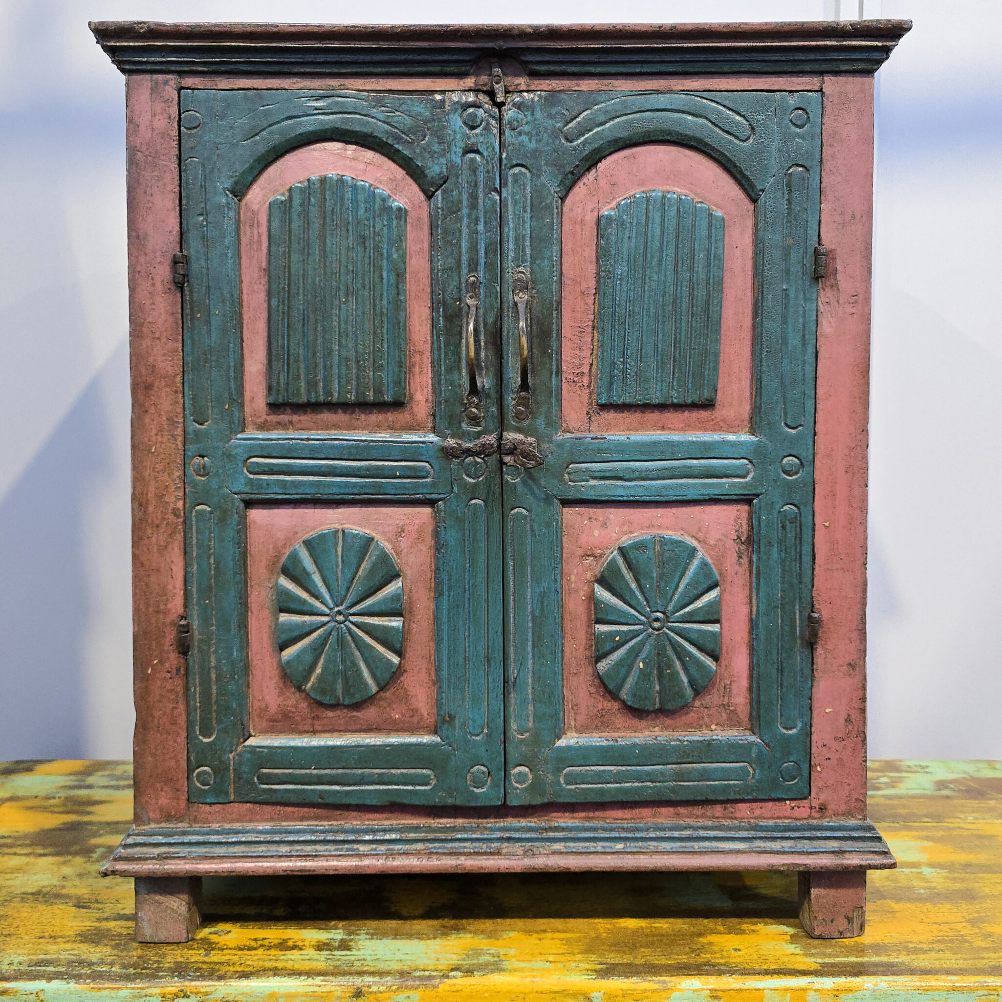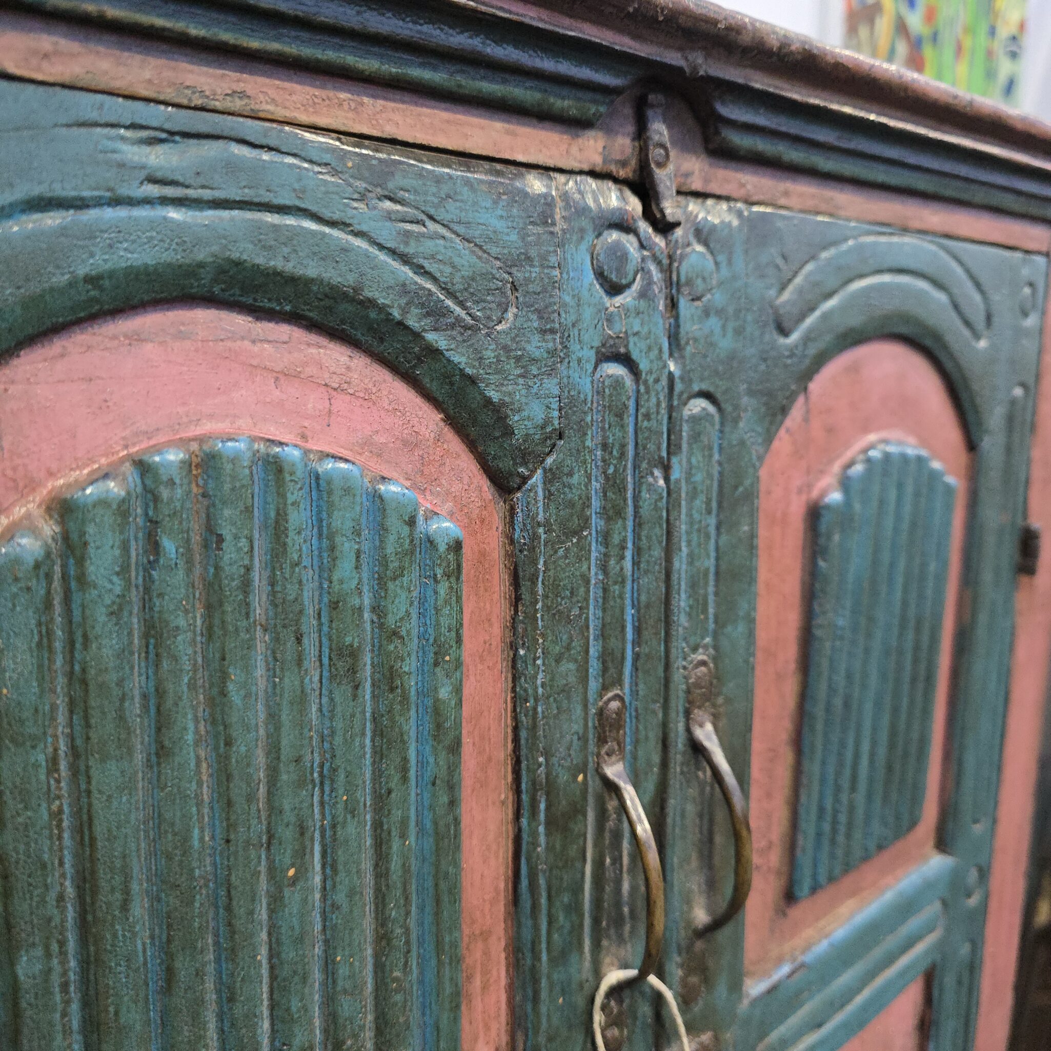 Das Kästchen verkörpert die reine Seele indischer Handwerkskunst in jedem Detail. Jedes Stück wird aus hochwertigem Massivholz gefertigt. Dies garantiert eine außergewöhnliche Langlebigkeit und Stabilität. Zudem besticht dieses Modell durch seine markante Farbgebung in Blau und Altrosa. Diese Kombination verleiht dem Möbelstück eine unverwechselbare Ausstrahlung. Deshalb eignet es sich hervorragend als Blickfang in Ihrem Wohnbereich. Das Kästchenerzählt eine eigene Geschichte vergangener Zeiten. Somit holen Sie sich nicht nur ein Möbelstück, sondern ein echtes Stück Kultur in Ihr Haus. Darüber hinaus sorgt die natürliche Haptik des Holzes für ein warmes Raumklima.