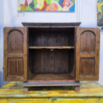 Dieses exklusive Kästchen ist ein absolutes Unikat. Folglich existiert kein zweites Exemplar mit exakt derselben Maserung oder Patina. Die kunstvollen Schnitzereien an den Fronten zeugen von meisterhaftem Können. Erfahrene Handwerker gestalten diese Verzierungen mit viel Liebe zum Detail. Zudem unterstreichen die authentischen Gebrauchsspuren den rustikalen Vintage-Charakter. Das Massivholz arbeitet und atmet über die Jahre hinweg. Deshalb bleibt die Schönheit des Materials dauerhaft erhalten. Das Kästchen verfügt über robuste Beschläge aus Metall. Diese harmonieren perfekt mit dem antiken Design. Somit verbindet das Produkt ästhetischen Anspruch mit traditioneller Fertigungstechnik.