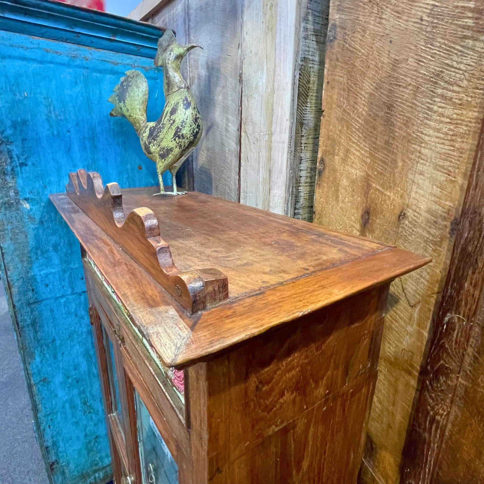 Dieses charmante Holzschränkchen aus Indien vereint klassische Formgebung mit liebevollen Details.