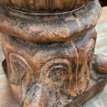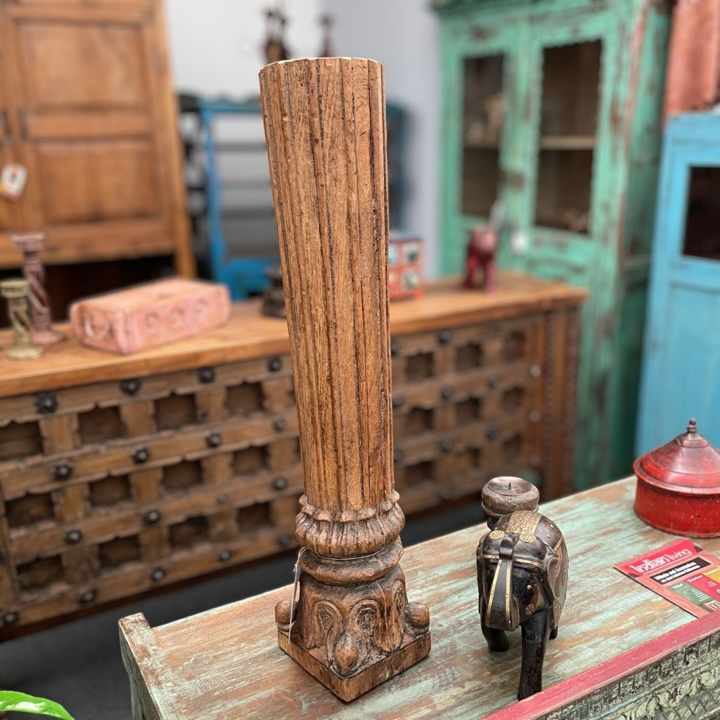 Dieser ausdrucksstarke Kerzenständer besticht durch seine schlanke Säulenform und die charaktervolle Oberfläche mit sichtbarer Patina. Die fein gearbeitete Struktur und die massive Ausstrahlung machen ihn zu einem besonderen Dekorobjekt, das sowohl einzeln als auch in Kombination mit weiteren Kerzenhaltern wirkt.