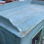 Ein charmantes, kleines Vitrinenkästchen aus massivem Holz, dessen zarte türkisfarbene Patina ihm einen ganz besonderen Charakter verleiht.