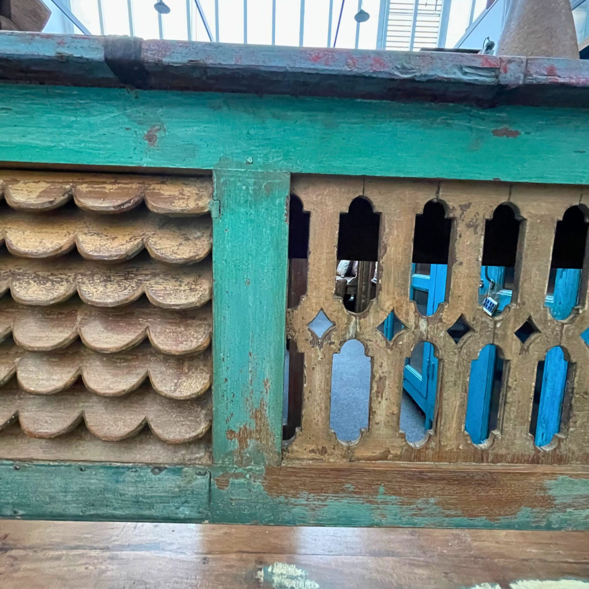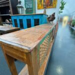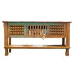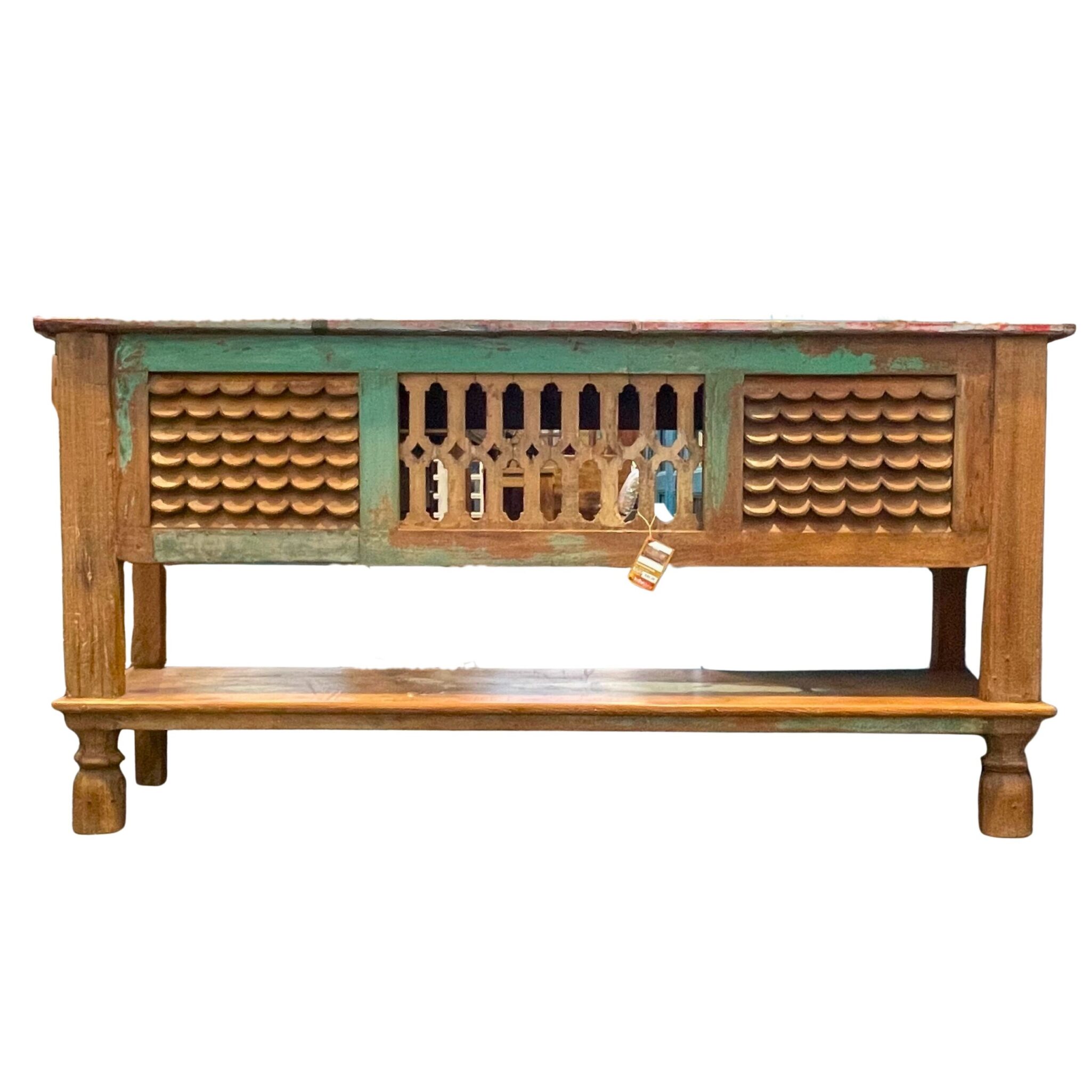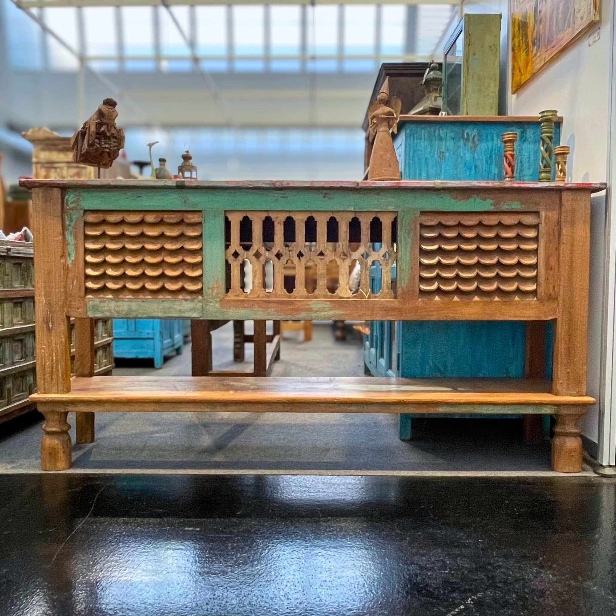 Dieser beeindruckende Konsolentisch aus Indien vereint rustikale Authentizität mit kunstvoller Handwerkskunst.