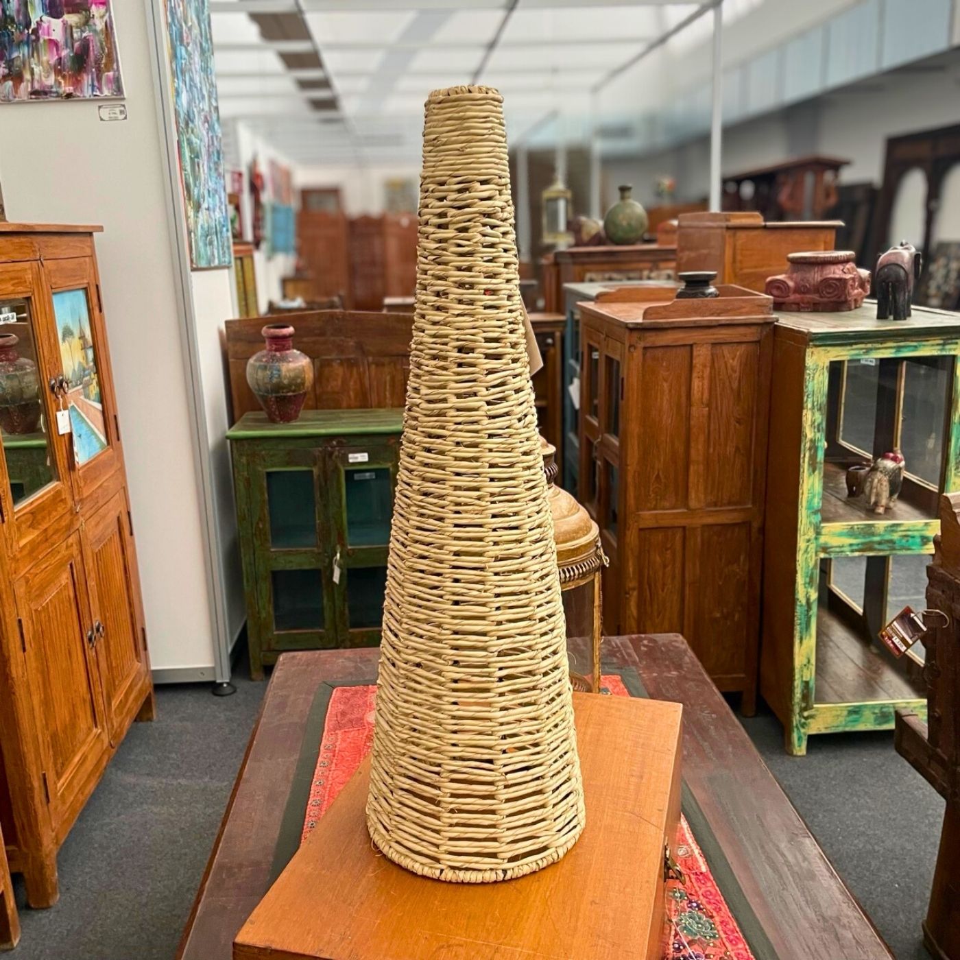 Der Lampenschirm kann sowohl einzeln als Statement-Piece als auch in Kombination mit weiteren Natur- und Ethno-Elementen eingesetzt werden.