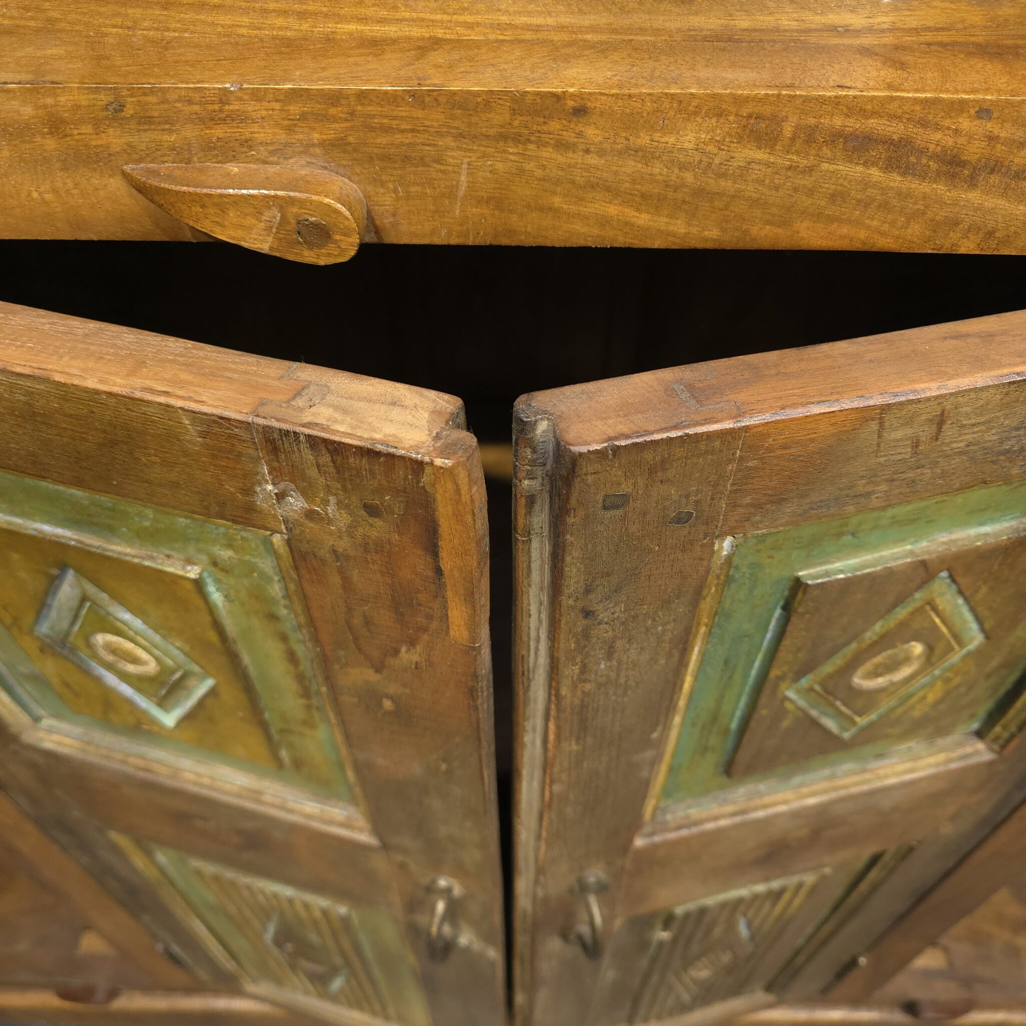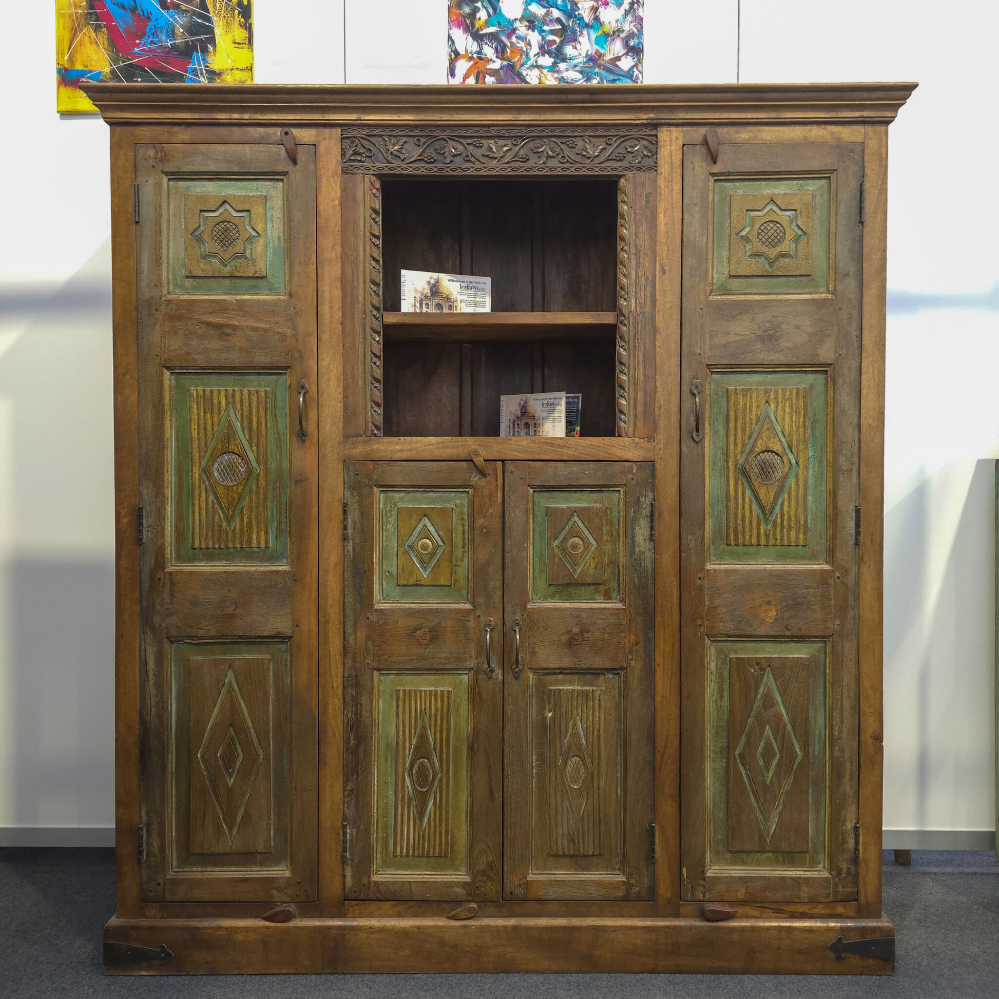 Wer sich für diesen Schrank entscheidet, setzt ein klares Statement gegen die Schnelllebigkeit moderner Massenware. Da das Holz mit natürlichen Verfahren behandelt wurde, bleibt die authentische Optik über Jahre hinweg erhalten. Die robuste Verarbeitung garantiert zudem eine zuverlässige Nutzung im täglichen Gebrauch. Somit bereichert dieses Unikat Ihr Interieur auf nachhaltige Weise. Darüber hinaus fügt sich das Design harmonisch in einen rustikalen oder orientalischen Wohnstil ein. Der Schrank besticht deshalb durch seine Vielseitigkeit und seine edle Präsenz. Folglich holen Sie sich mit diesem handgefertigten Prachtstück ein Stück echte Exotik direkt in Ihr Heim.