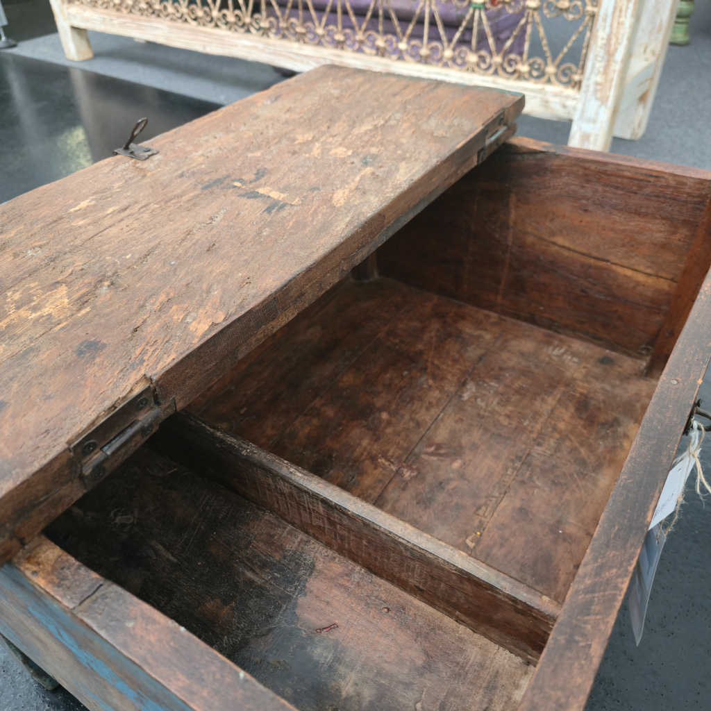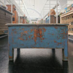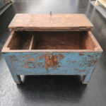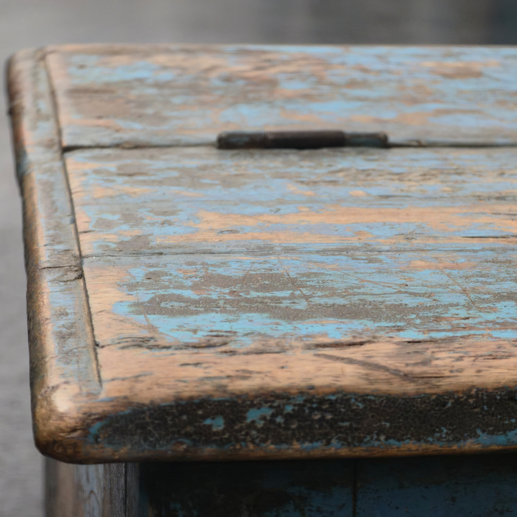 Dieses charmante Schreibpult im Vintage-Stil ist ein echtes Unikat für Liebhaber des rustikalen Designs. Mit seiner markanten, abgenutzten blauen Lackierung im Shabby Chic-Look bringt es Geschichte und Charakter in jeden Raum. Die bewusst erhaltene Patina und die sichtbare Holzmaserung unterstreichen den authentischen, antiken Charakter dieses Möbelstücks.