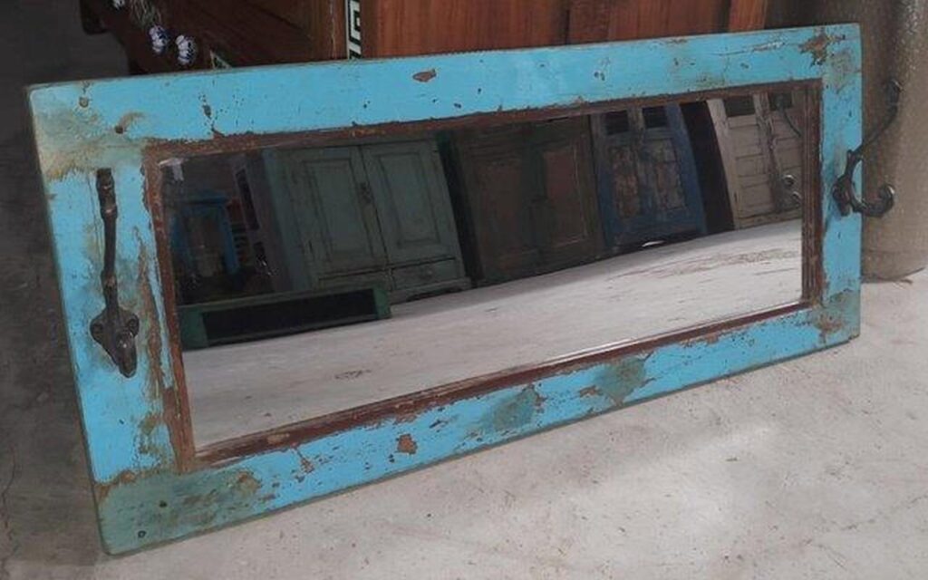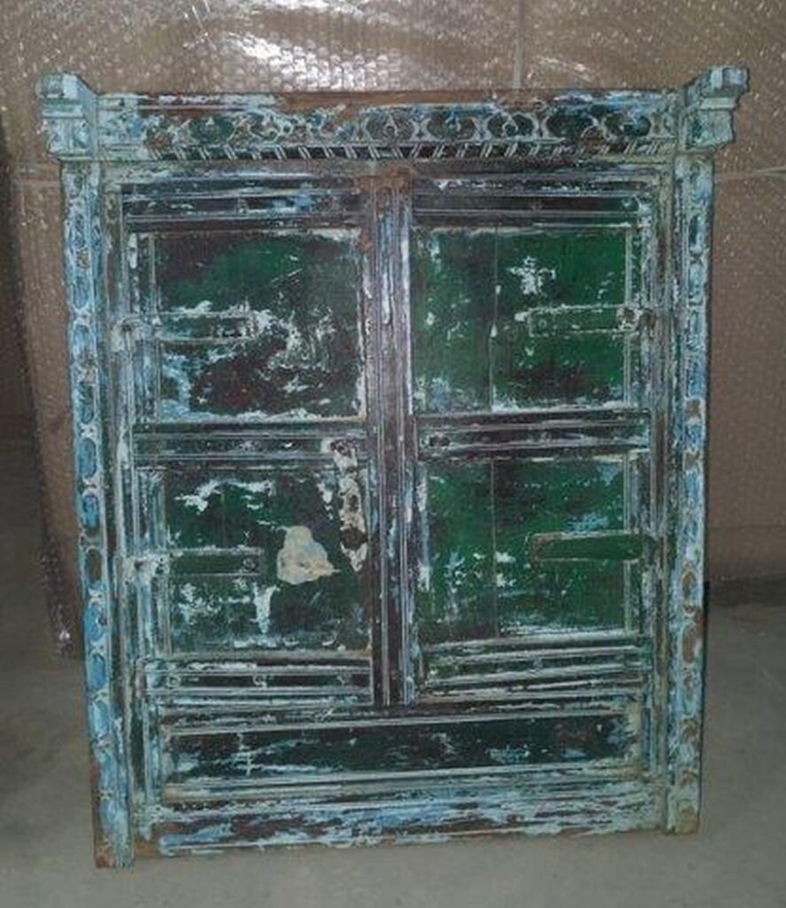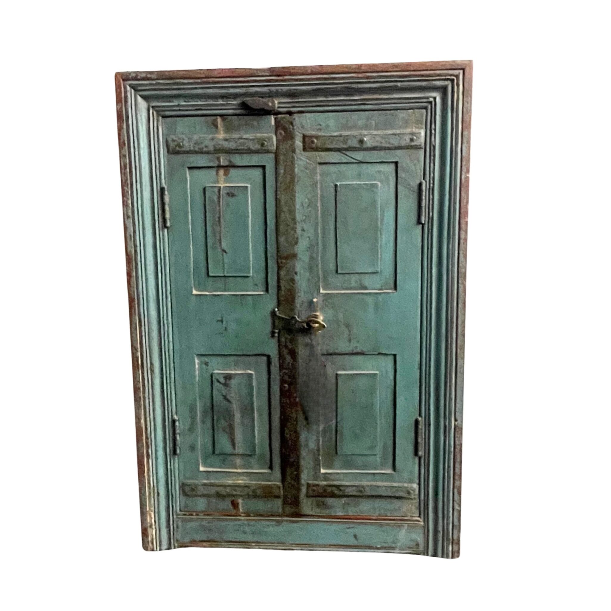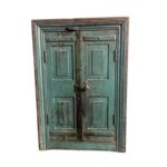 Gefertigt aus massivem, altgrün patiniertem Holz, erinnert das Stück an traditionelle indische Türrahmen und strahlt pure Authentizität aus.