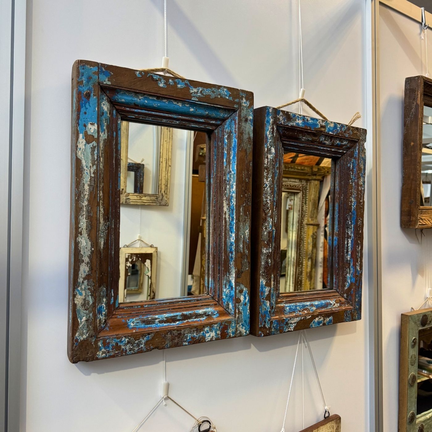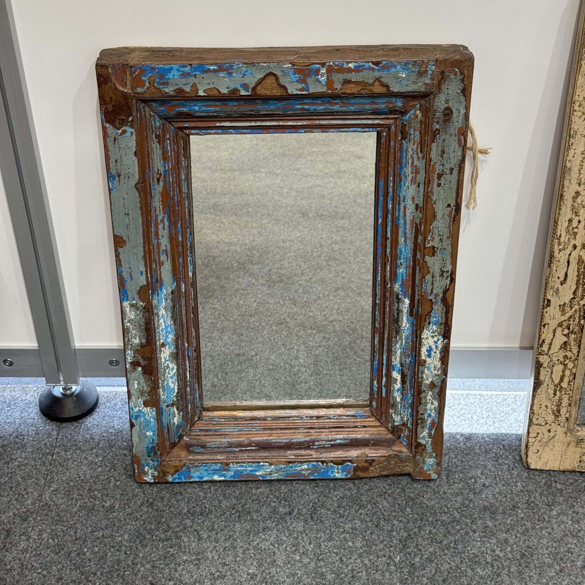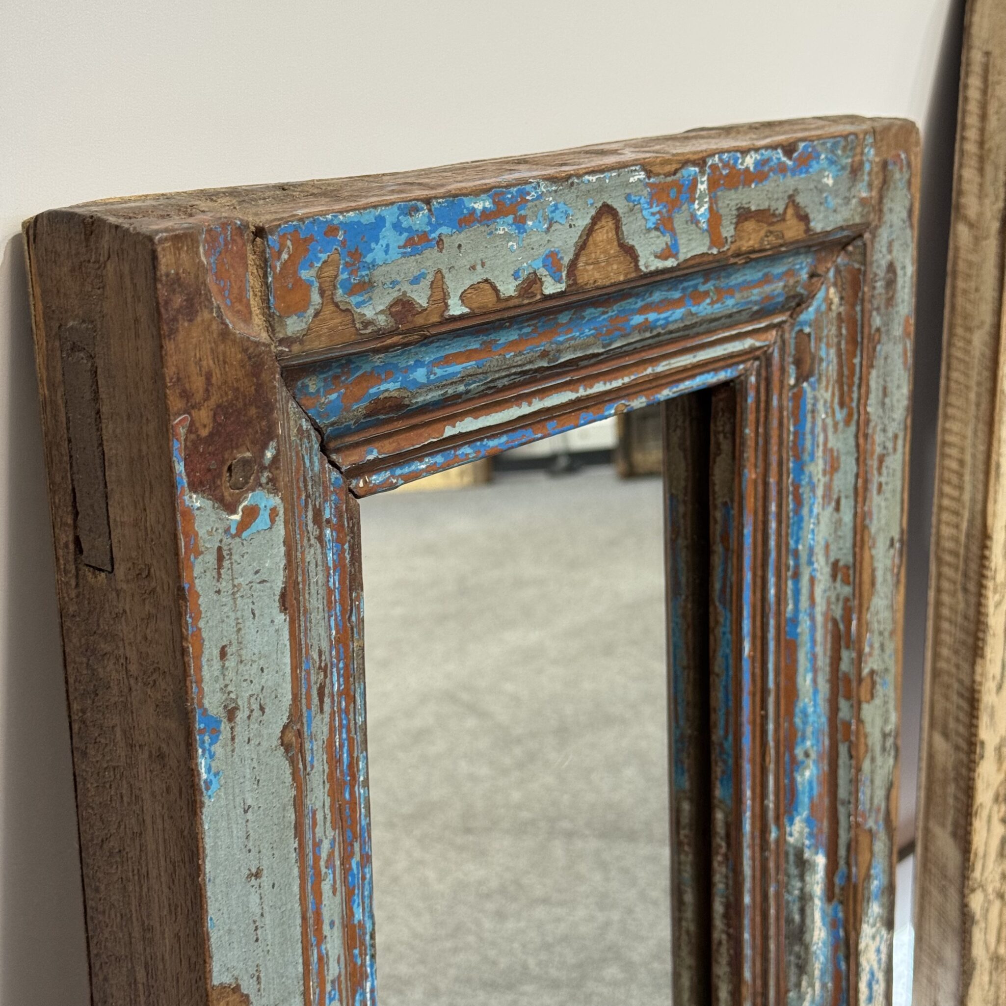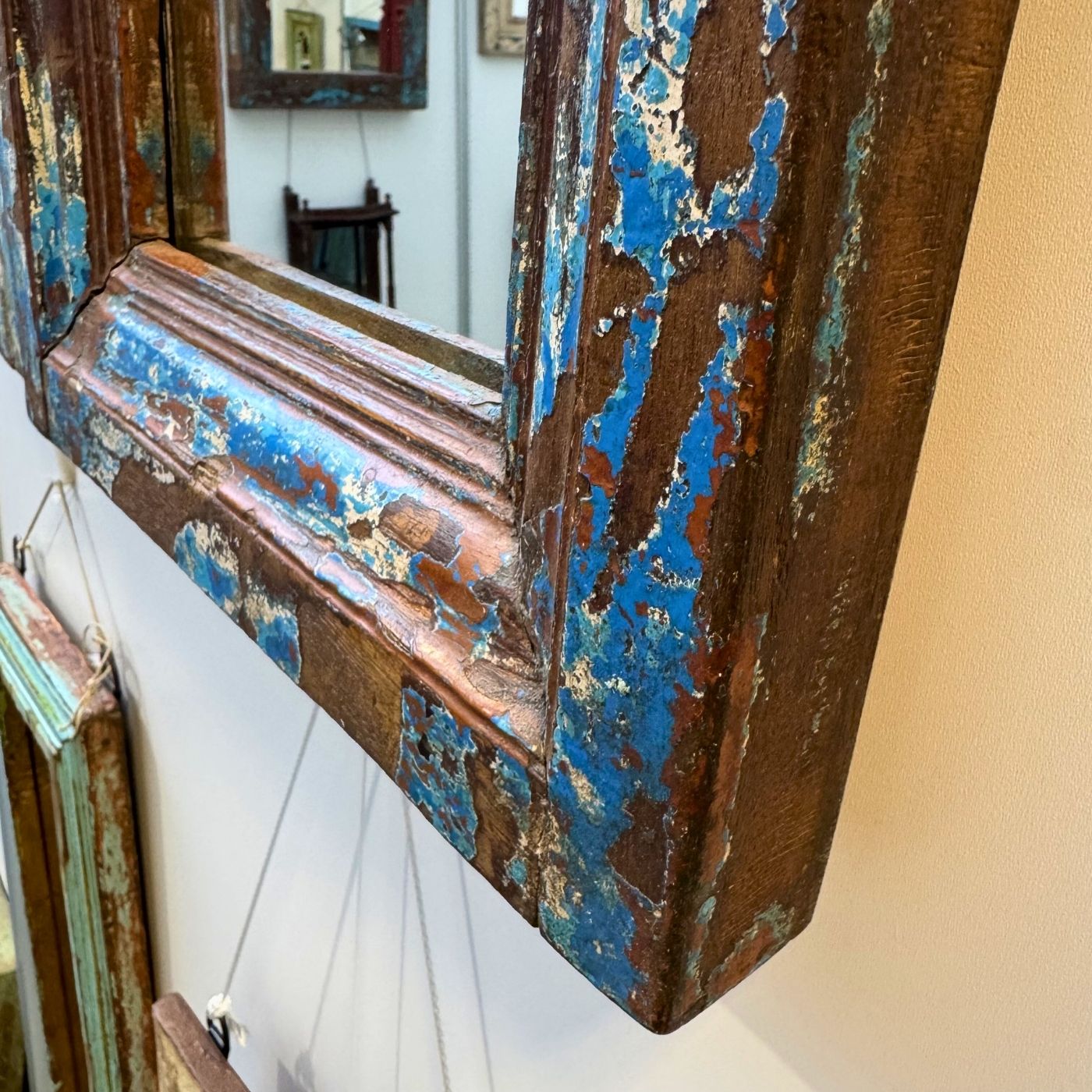 Diese dekorativen Wandspiegel überzeugen durch ihre Holzrahmen mit authentischer, gewachsener Patina. Die lebendigen Farbschichten sowie die natürlichen Gebrauchsspuren verleihen jedem Stück eine besondere Tiefe und unterstreichen konsequent den charaktervollen Vintage-Charme. Die Farbreste wurden hierbei so belassen, dass die natürliche Beschaffenheit des Holzes spürbar bleibt. Somit entsteht ein stimmiges Zusammenspiel zwischen dem Material und der geschichtsträchtigen Gestaltung. Ein wesentliches Merkmal von diesem Spiegel Holz ist die kunstvoll gealterte Oberfläche. Jedes Unikat erzählt durch diese spezielle Patina eine ganz eigene Geschichte aus vergangenen Zeiten. Zudem überzeugt das Modell durch seine solide handwerkliche Ausführung.