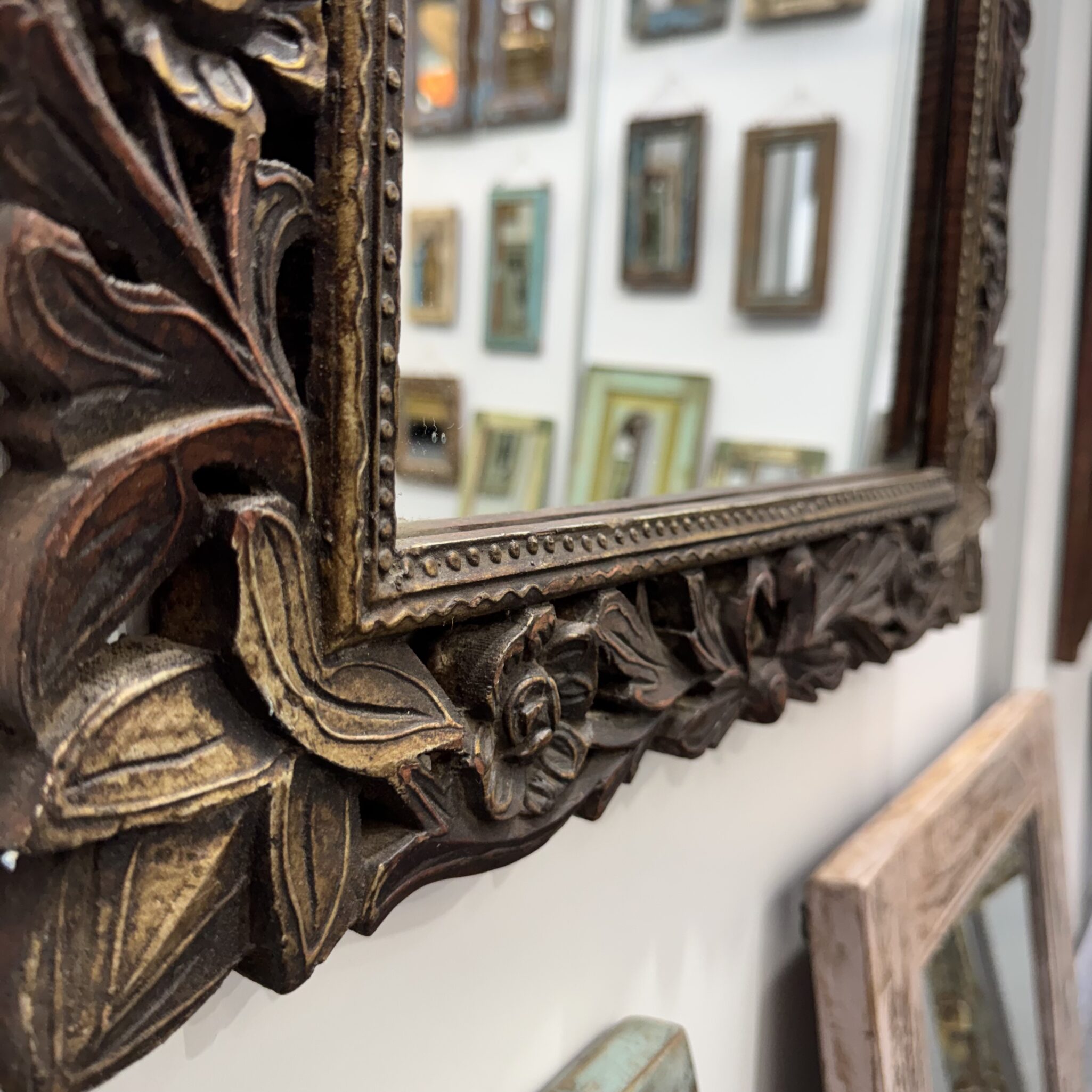 Einzigartiges Design beim Spiegel Altholz Ornament Dieser Spiegel bringt eine unverwechselbare Atmosphäre in Ihre Räumlichkeiten. Jedes Element erzählt eine eigene Geschichte durch seine Oberfläche. Diese dekorativen Wandspiegel überzeugen durch ihre Holzrahmen mit authentischer, gewachsener Patina. Die lebendigen Farbschichten und natürlichen Gebrauchsspuren verleihen jedem Stück eine besondere Tiefe und unterstreichen den charaktervollen Vintage-Charme. Zudem besticht das Echtholz durch seine hellen, weiß-gewaschenen Akzente und die filigranen Schnitzereien. Deshalb fügt sich das Möbelstück perfekt in moderne sowie rustikale Einrichtungsstile ein. Somit erhalten Sie nicht nur einen Spiegel, sondern ein echtes Kunstwerk für Ihre Wand. Jeder Spiegel ist ein handgefertigtes Einzelstück und bringt eine besondere, individuelle Ausstrahlung in Flur, Wohnbereich oder Schlafzimmer.