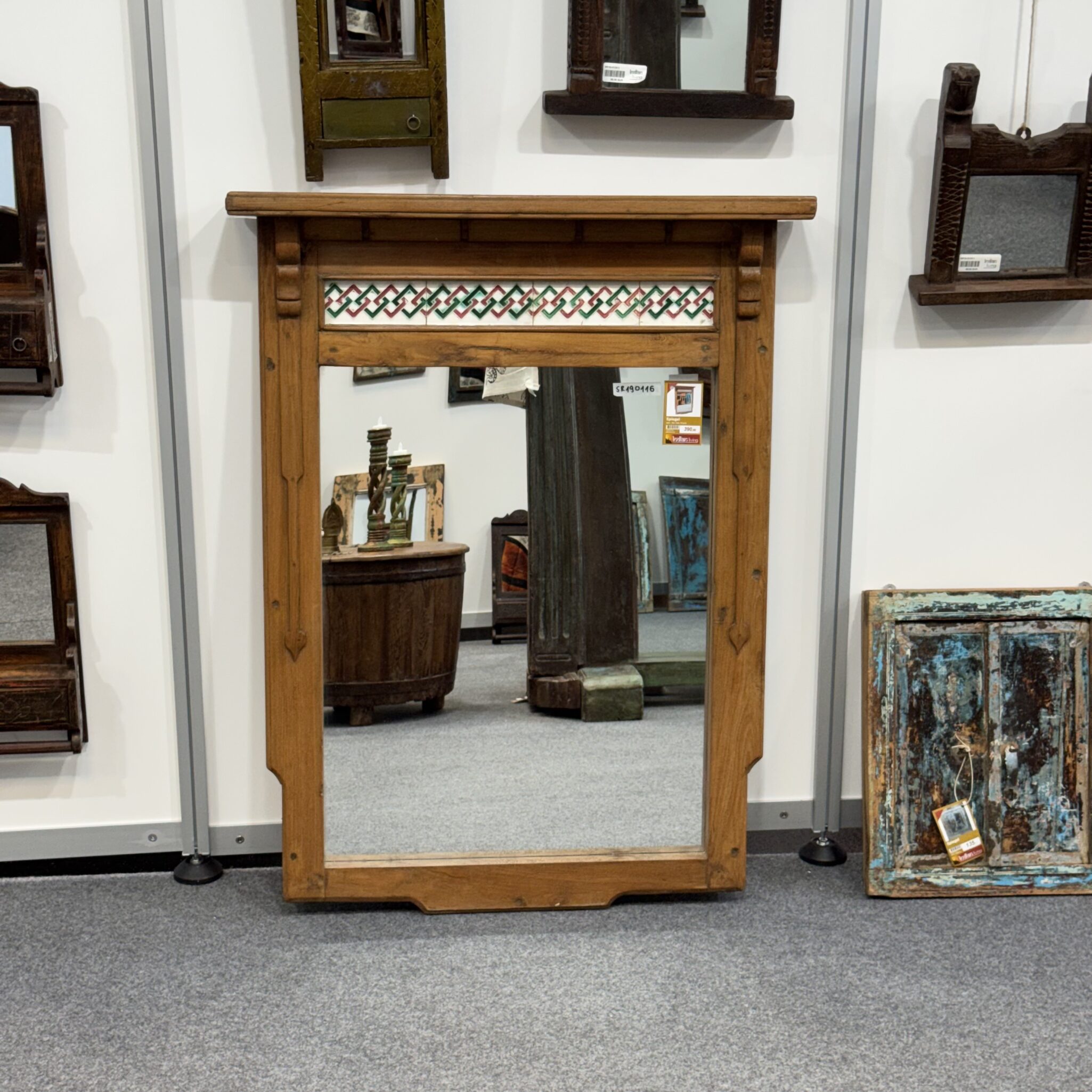 Bei der Herstellung dieser Spiegel steht die traditionelle Handwerkskunst im Vordergrund. Diese dekorativen Wandspiegel überzeugen durch ihre Holzrahmen mit authentischer, gewachsener Patina. Die lebendigen Farbschichten und natürlichen Gebrauchsspuren verleihen jedem Stück eine besondere Tiefe und unterstreichen den charaktervollen Vintage-Charme. Jeder Spiegel ist ein handgefertigtes Einzelstück und bringt eine besondere, individuelle Ausstrahlung in Ihren Wohnbereich oder das Schlafzimmer. Zudem schmücken dekorative, von Hand gesetzte Metallnieten den breiten Rahmen der Konstruktion. Deshalb ist dieses Modell ein wahres Unikat für Kenner von hochwertigem Ethno-Dekor. Durch die richtige Pflege dieser Oberflächen bleibt die natürliche Schönheit über viele Jahre hinweg perfekt erhalten. Somit sichern Sie sich ein langlebis Kunstwerk für Ihre vier Wände.