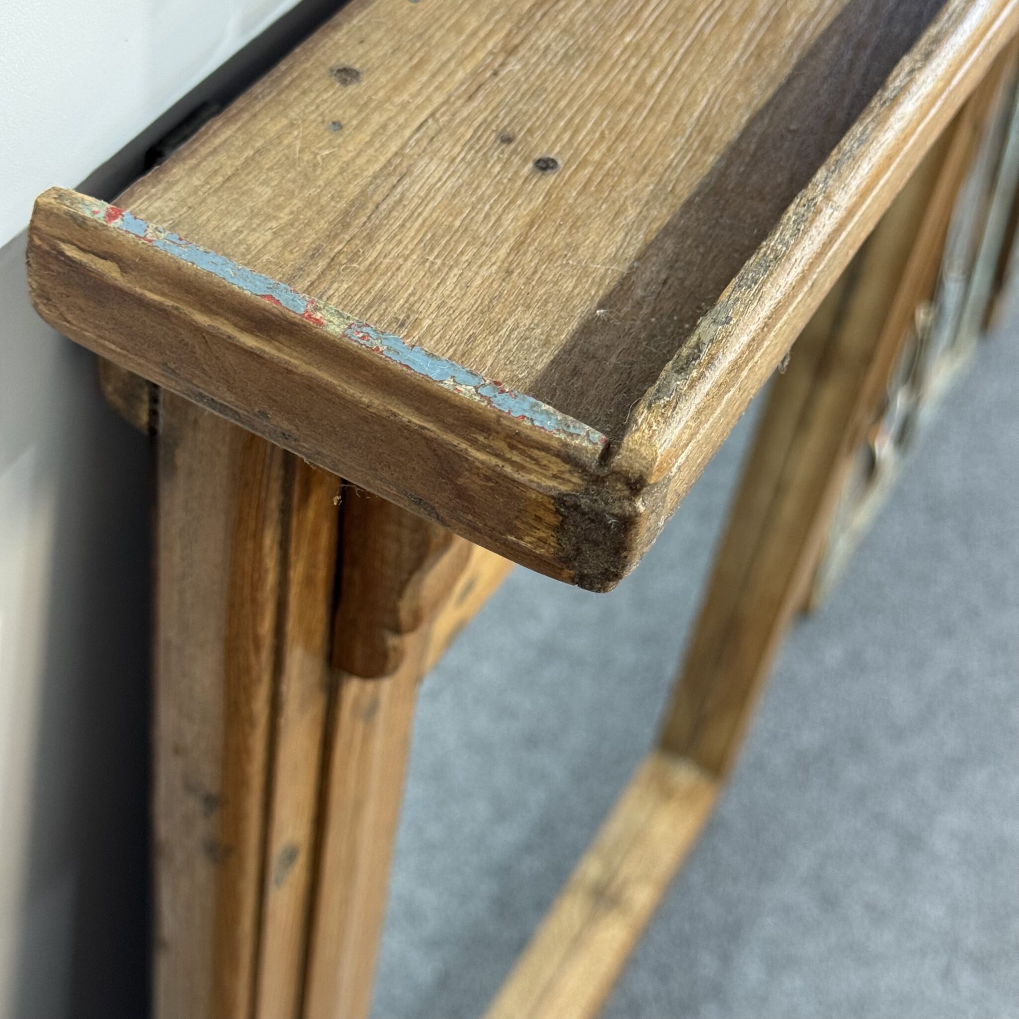 Dieser markante Spiegel besticht durch seine Fertigung aus echtem, historischem Altholz. Das Möbelstück zeigt zudem eine wunderschöne türkisfarbene Patina, welche die natürliche Struktur des Materials auf besondere Weise betont. Deshalb eignet sich dieses Objekt hervorragend als farbiger Akzent in Ihrem Badezimmer oder auch im Flur. Das verarbeitete Echtholz garantiert überdies eine hohe langlebige Qualität und eine angenehm authentische Haptik. Somit investieren Sie in ein nachhaltiges Produkt mit viel historischem Charme. Darüber hinaus passt das rustikale Design folglich ideal zu individuellen Einrichtungsstilen wie dem Shabby Chic oder dem Landhausstil. Ein solches Unikat lässt sich zudem wunderbar mit weiteren Vintage-Möbeln aus unserem Sortiment kombinieren. Folglich wertet das Stück jede Wand sofort optisch auf und schafft eine behagliche Wohnatmosphäre in Ihrem Zuhause.