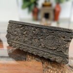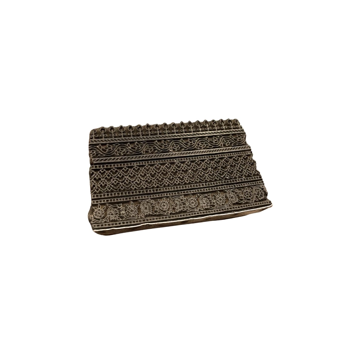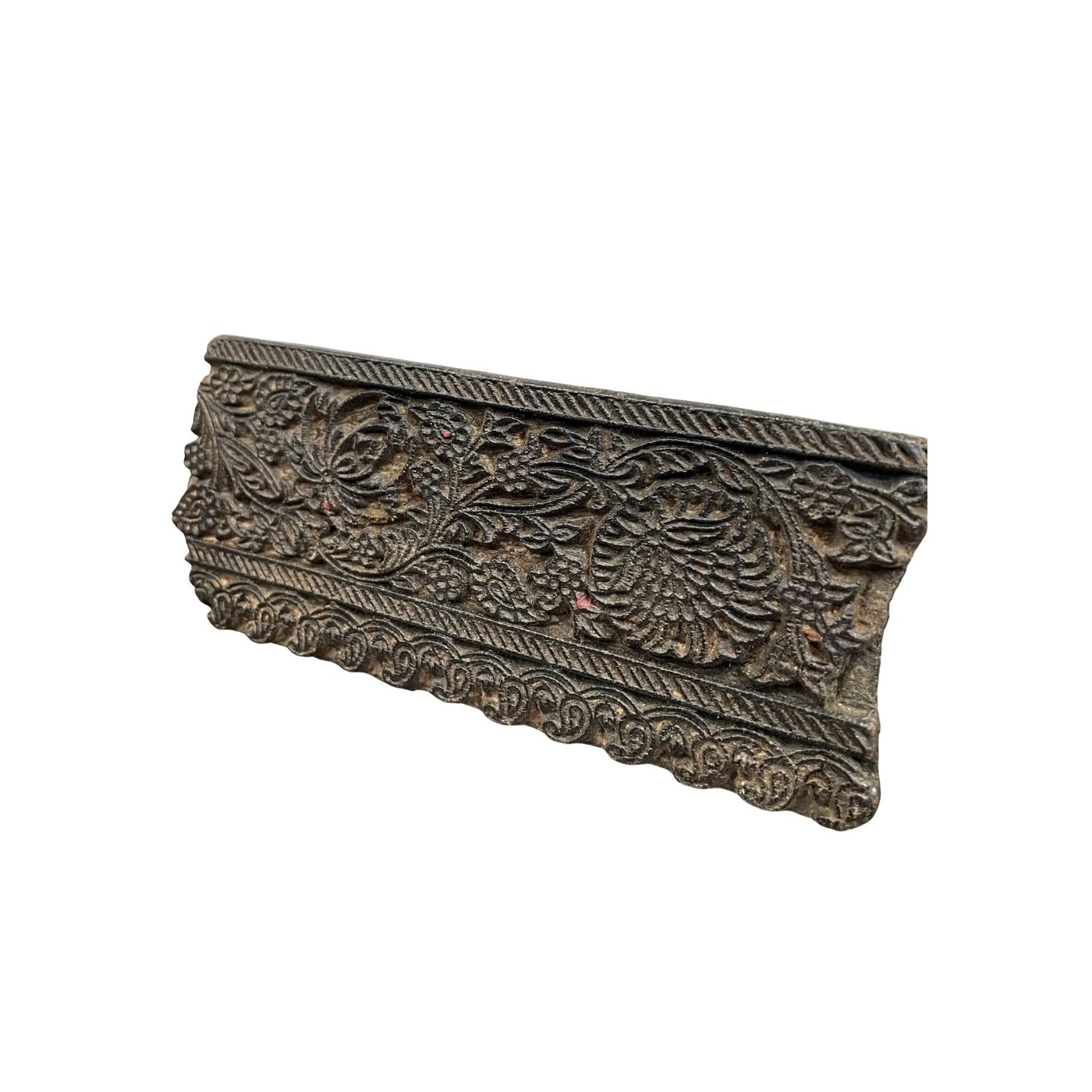 Dieser handgeschnitzte Textilstempel stammt aus Indien und wurde traditionell für den Textildruck verwendet. Das fein ausgearbeitete Relief zeigt ein florales Motiv und trägt deutliche Spuren seines ursprünglichen Gebrauchs – genau das verleiht ihm seinen authentischen Charakter.