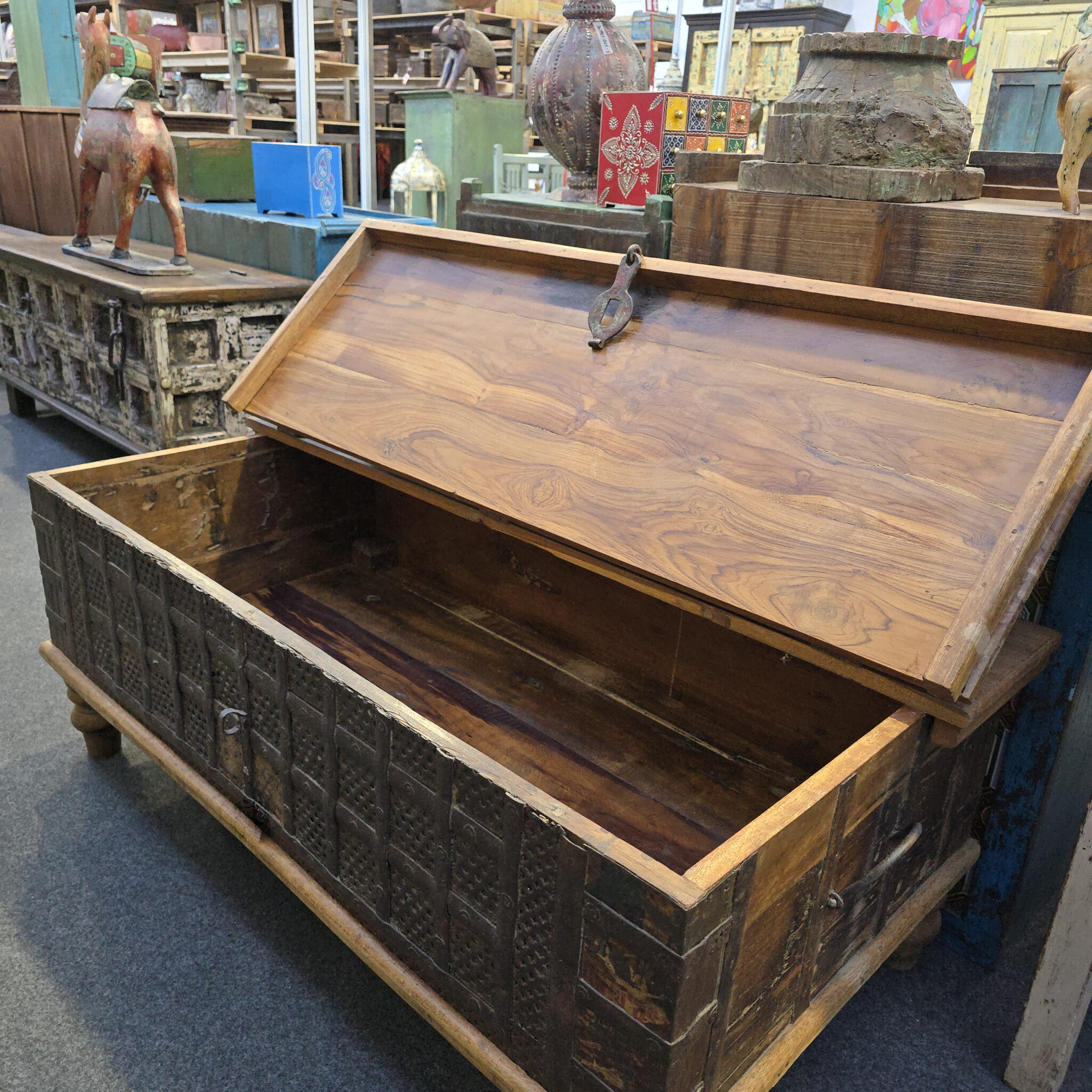 Der besondere Charme dieser Truhen liegt in der Kombination aus rustikalem Massivholz und handgefertigten Beschlägen. Jede Oberfläche erzählt durch ihre individuellen Kerben und Farbnuancen eine eigene Geschichte. Darüber hinaus bieten diese Truhen großzügigen Platz für Textilien, Bücher oder andere Kostbarkeiten. Jedes Modell ist folglich ein absolutes Einzelstück, das durch seine handwerkliche Perfektion überzeugt. Die klassische Formgebung lässt sich zudem ideal in verschiedenste Einrichtungsstile integrieren, von Landhaus bis Modern-Chic. Deshalb sind unsere Truhen die perfekte Wahl für ein stilvolles und aufgeräumtes Zuhause. Somit erhalten Sie ein funktionales Kunstwerk, das den Raum optisch aufwertet. Diese Truhen stehen folglich für eine Lebensart, die das Echte und Unverfälschte liebt.