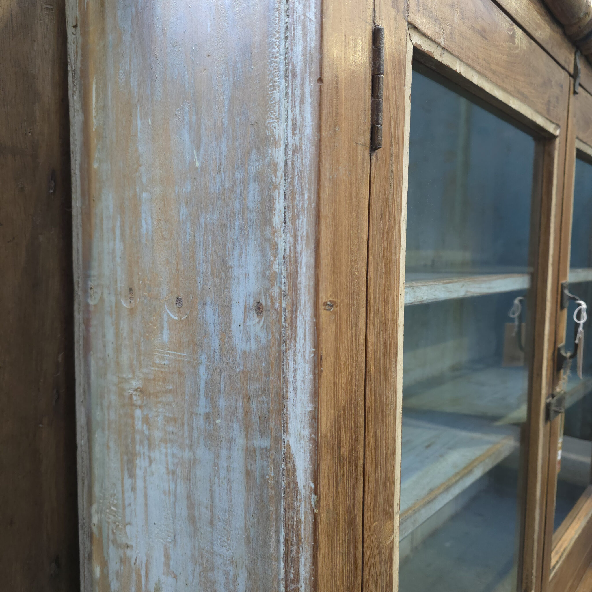 Das Vitrinenkästchen verbindet indische Handwerkskunst harmonisch mit einem modernen Wohnstil. Die verglasten Türen setzen Ihre liebsten Sammlerstücke perfekt in Szene. Somit schafft das Möbelstück einen eleganten Rahmen für Ihre Dekoration. Darüber hinaus unterstreichen die rustikalen Details die Exklusivitiät des gesamten Ensembles. Folglich wird dieses Vitrinenkästchen zum absoluten Blickfang in jedem Raum. Zudem fördert das natürliche Massivholz ein gesundes und spürbar angenehmes Raumklima.