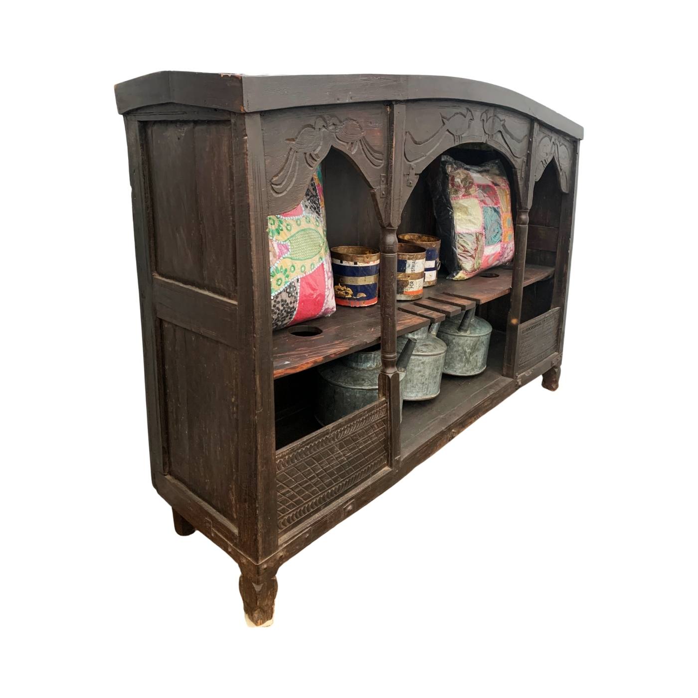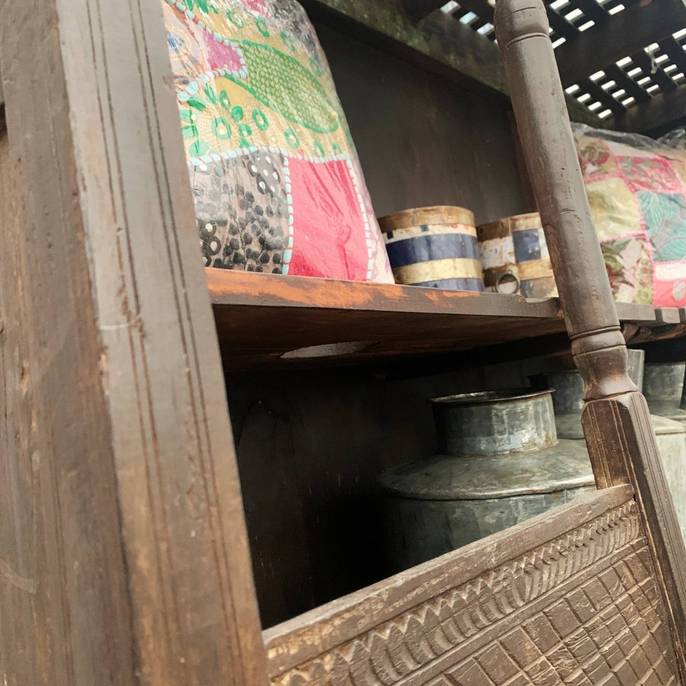 Diese handgefertigte Weinbar aus massivem Holz ist ein einzigartiges Stück indischer Handwerkskunst.