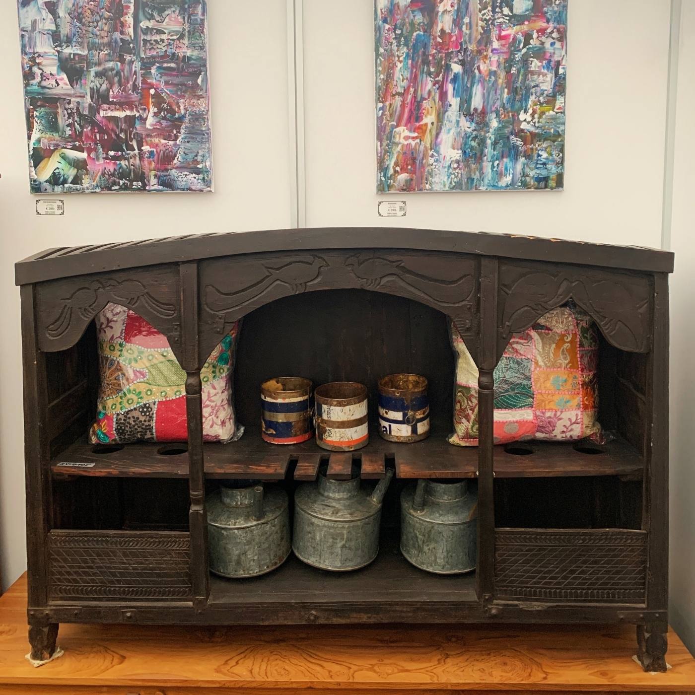 Ob als kleine Hausbar, Küchenmöbel oder dekorativer Beistelltisch – dieses Unikat verbindet Funktionalität mit Charakter und Geschichte.